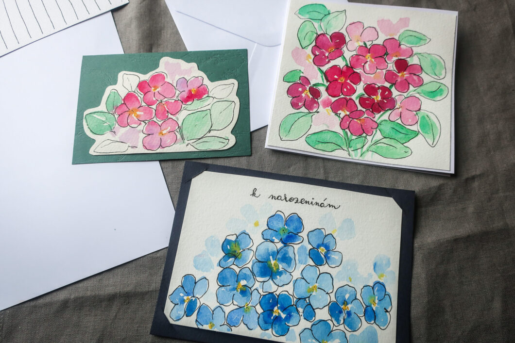 Tak to byly mé 3 nejoblíbenější způsoby, jak si z namalovaných obrázků vyrobit přáníčka a pokud vás zajímá ještě více nápadů, podívejte se na můj instagram či facebook.