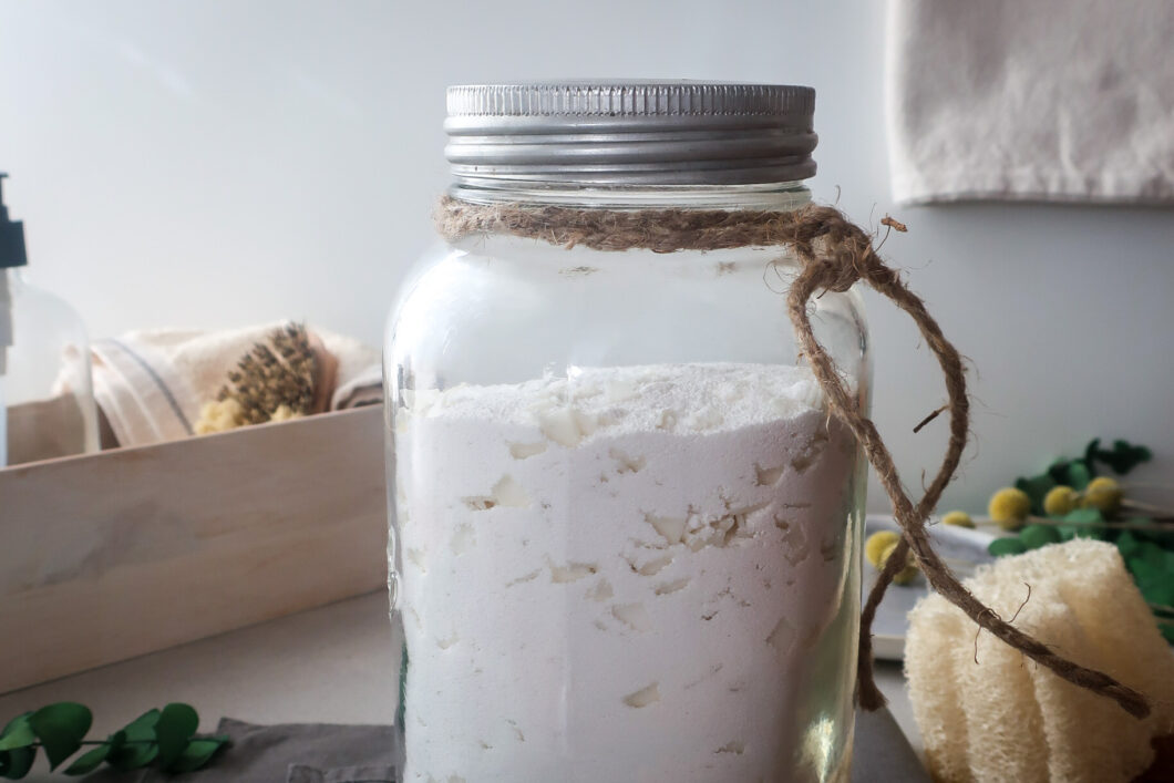 Druhou účinnou složkou je mýdlo, ideálně čisté rostlinné mýdlo (nejčastěji se používá olivové či kokosové). Může být v kostce, které nastrouháte na jemném struhadle a nebo jsou dnes lehce k sehnání přímo mýdlové vločky určené na praní prádla.